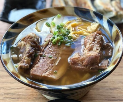 오키나와 소바는 밀가루로 만든 면을 사용하며, 돼지뼈 육수와 가다랭이포 국물로 맛을 냅니다. 다양한 토핑이 올라가는데, 삼겹살이 올라가면 ‘산마이니쿠 소바’, 뼈가 붙은 돼지갈비가 올라가면 '소키 소바’라고 불립니다.