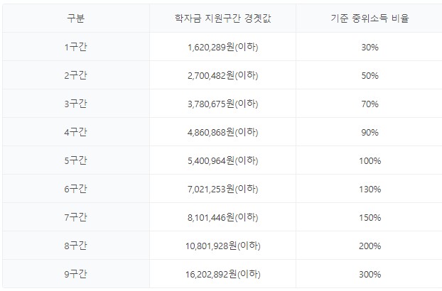 - 소득구간별로 해당 학기 등록금 및 경비만 지원됩니다.