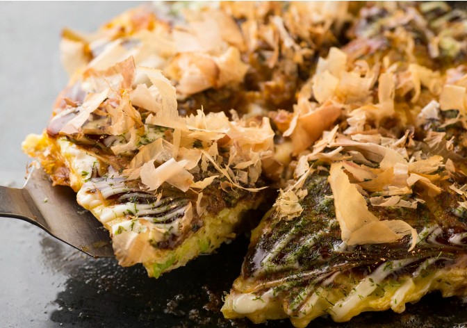 ‘일본식 피자’라고 불리는 오코노미야키는 직접 구워 먹는 재미가 있는 음식입니다. 오사카 스타일 오코노미야키는 두껍고 부드러운 반죽이 특징입니다.