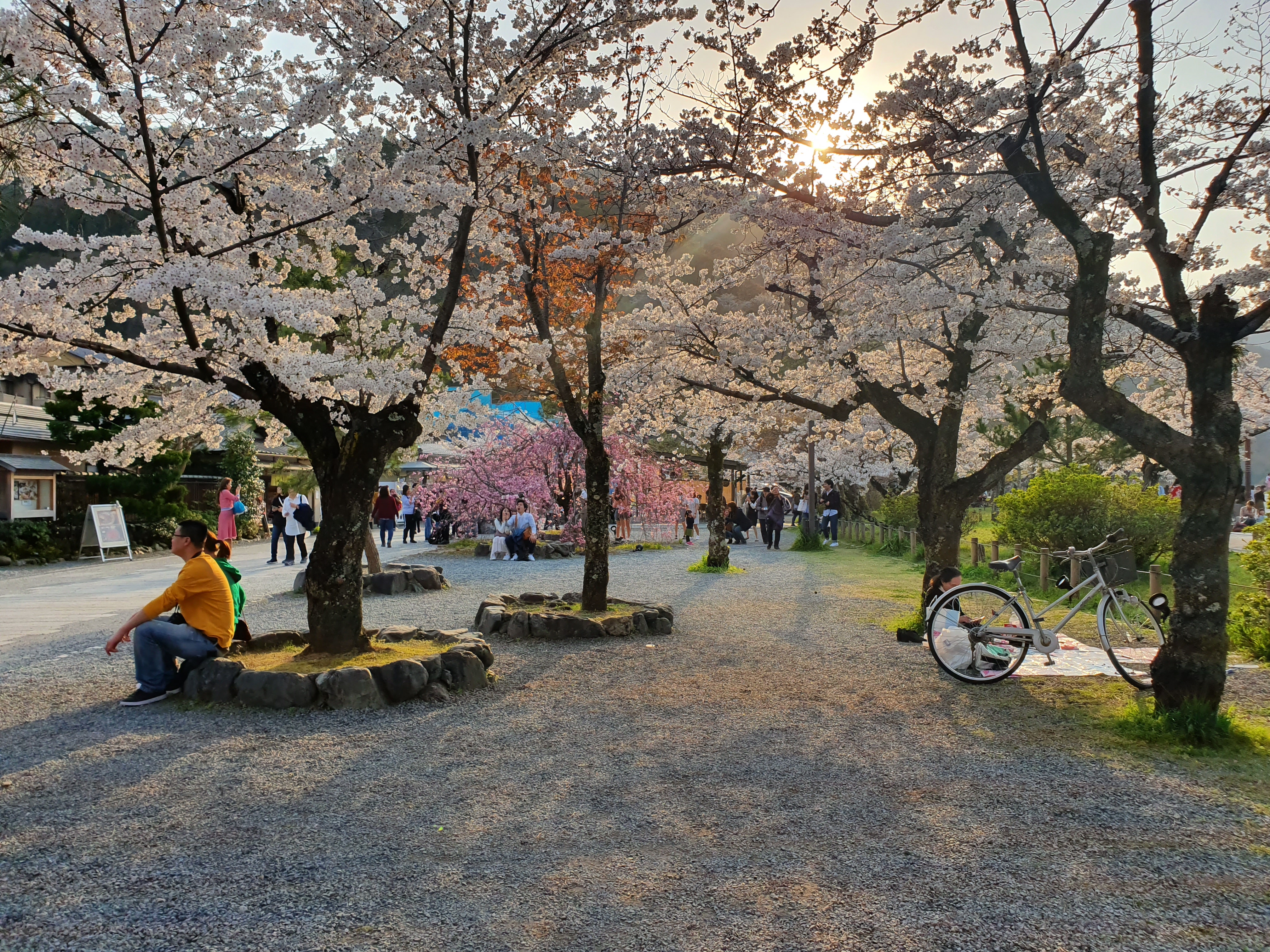 아라시야마는 자연과 전통적인 분위기가 조화를 이루는 교토의 대표적인 벚꽃 명소입니다. 도게츠교 주변의 왕벚나무는 강변 산책로를 따라 아름답게 펼쳐져 있습니다.